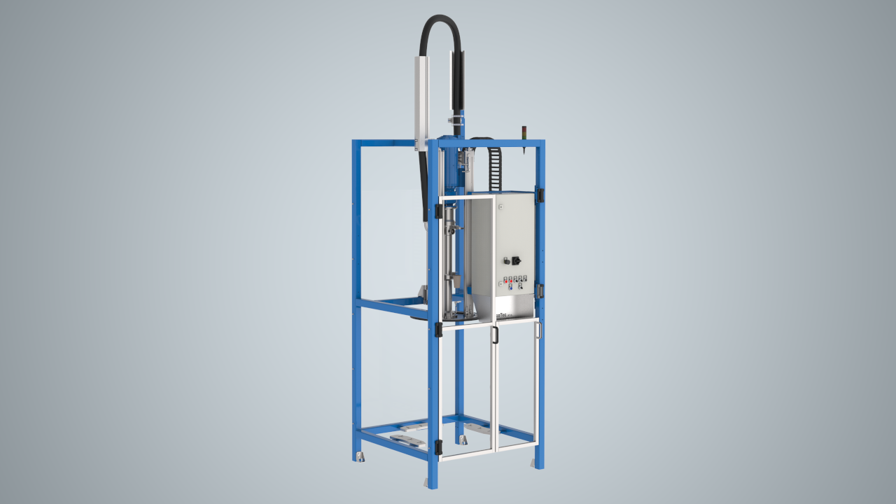 Depending on the version and size, the entire emptying system is housed in a base frame with a barrel loading ramp. Larger vessels such as 200 l barrels are simply pushed under the system directly onto the production floor or, together with a pallet, simply under the ViscoMT-XL.